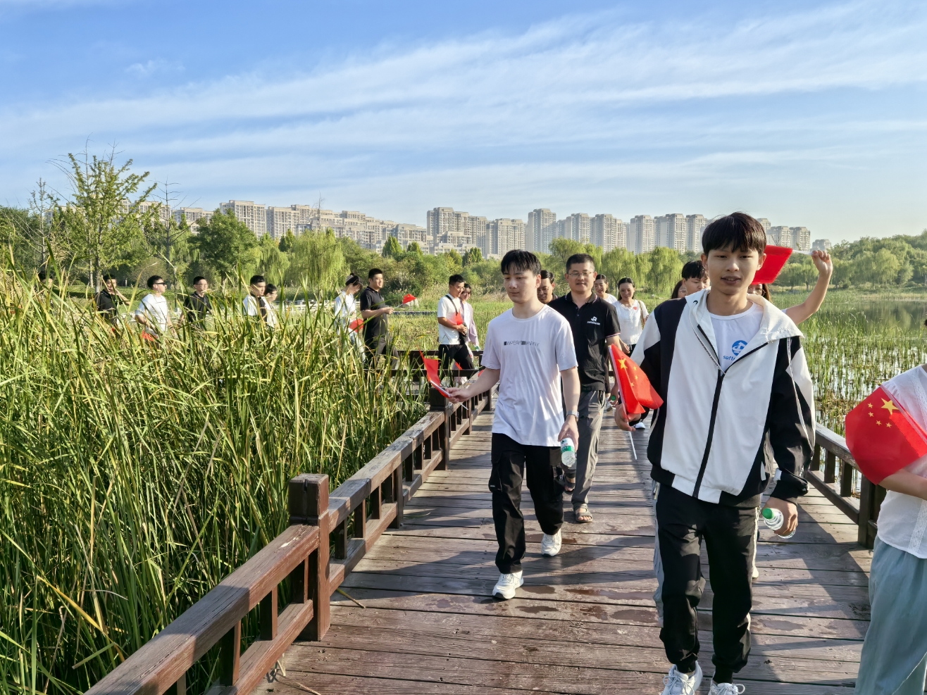 阳光明媚,微风拂面。鼎软天下的员工们身着统一的运动服装,精神抖擞地来到华山湖公园。在起点处,大家合影留念,为这次难忘的徒步之旅拉开了序幕。